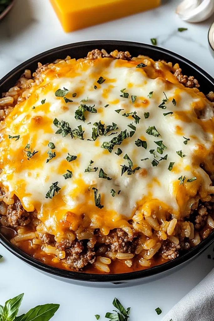 When the dinner bell rings on a busy weeknight and you’re staring at that mound of ground beef in the fridge, nothing feels more comforting than a warm, cheesy casserole baking away in the oven. This Cheddar-Crusted Ground Beef and Rice Casserole is like a cozy hug for your taste buds: layers of succulent, herb-scented beef and fluffy rice bathed in a rich tomato sauce, all crowned by a bubbly, golden cheddar-Parmesan crust. It’s the perfect solution for those nights when you crave something hearty but want to keep things simple. From sautéing onions and garlic to stirring in herbs and spices, every step fills your kitchen with inviting scents that make everyone gather around the stove. As an easy dinner casserole that any home cook (even a beginner) can master, it’s a go-to recipe for potlucks, family dinners, or even lunch prep. Plus, at around 650 calories per serving with balanced protein and carbs, it checks all the boxes for an all-in-one comfort food meal.