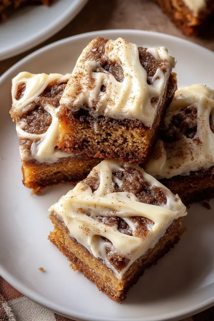 SERVING SUGGESTIONS FOR CHEWY CINNAMON ROLL BLONDIES WITH CREAM CHEESE ICING