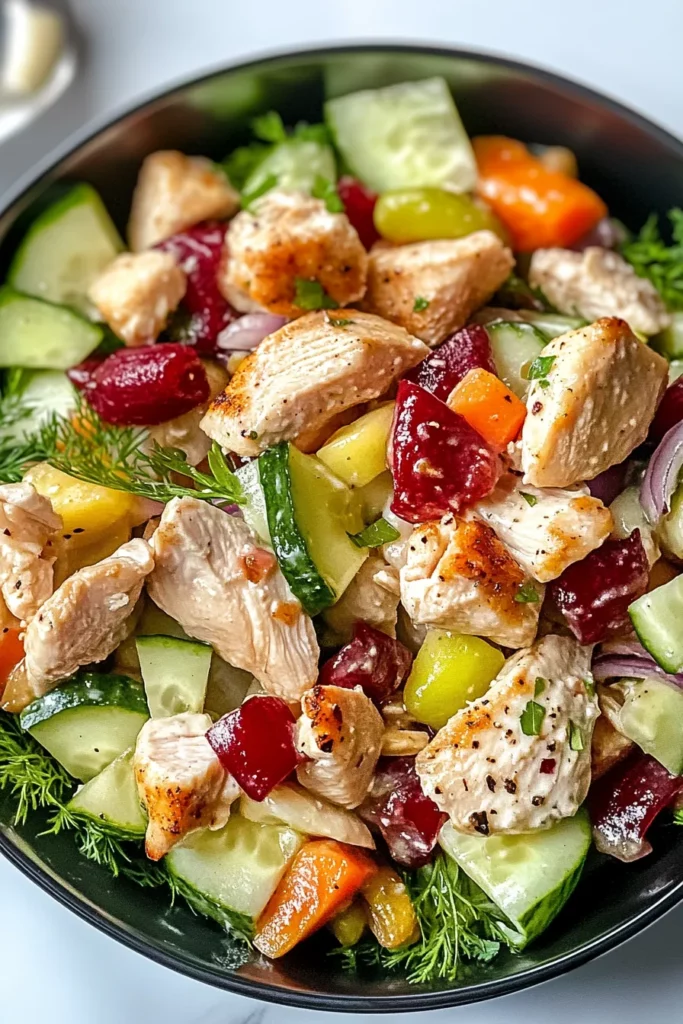 Whether you’re a beginner looking for an easy chicken recipe, a health-conscious food lover exploring more Greek yogurt salad dressings, or someone who simply craves a fresh take on classic summer salads, this recipe is tailor-made for you. With just 20 minutes of hands-on prep, zero cooking time, and a quick 30-minute chill to let flavors marry, you’ll have a beautiful bowl of colorful salad on the table in no time. At about 400 calories per serving, it strikes the perfect balance between healthy and hearty, making it ideal for lunch or dinner. So grab your chopping board and let’s dive into one of the most delightful, versatile, and downright delicious chicken salads you’ll ever make!