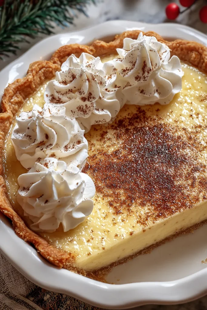 I still remember the first time I made this custard pie for our Christmas Eve dinner. After a day spent trimming the tree and trimming my own patience with tangled lights, I slid that golden crust into the oven and let its fragrant filling work its magic. By the time dinner plates were cleared, the warm custard was gently wobbling in the center, like an edible snow globe of holiday cheer. We perched on the couch in our coziest sweaters, forks at the ready, and took our first bites as soft carols floated through the air. It was more than just dessert—it was a tradition in the making, a sweet moment that bound us together. Now, every December, I can’t help but smile as I whisk, bake, and chill this pie, knowing that it will once again turn an ordinary evening into a heartwarming memory.