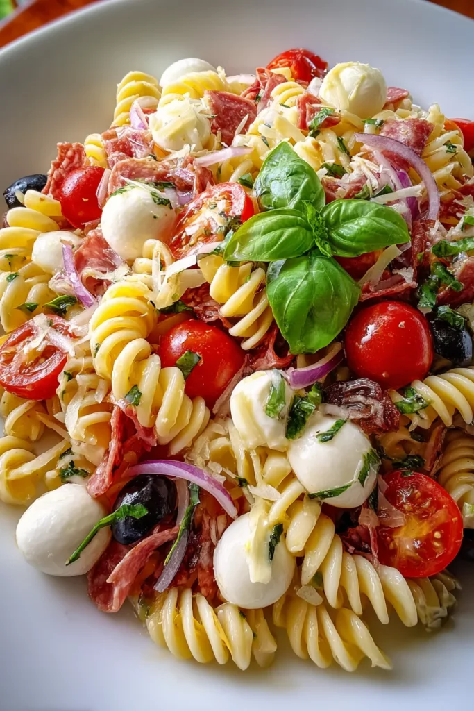 Loaded with cherry tomatoes, mozzarella, olives, and tangy dressing, this pasta salad is perfect for gatherings or a light lunch. Each bite is a taste of Italy!