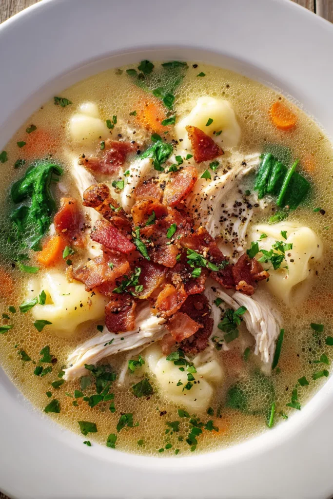 Let’s dive into the heart of this recipe—creating that irresistible, creamy broth with tender chicken, gooey cheese, and crispy bacon. Follow these detailed steps to bring all the flavors together seamlessly.