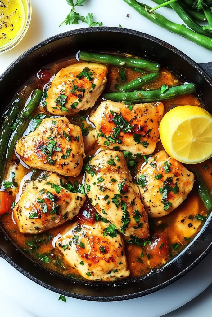 Season the chicken pieces with salt and pepper, then add them to the skillet. Cook until golden brown and cooked through, approximately 6-8 minutes. Remove the chicken from the skillet and set aside.