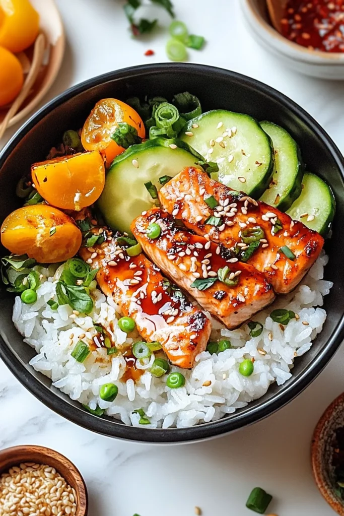 One of my favorite memories is coming home after a brisk evening walk, craving something both comforting and vibrant. I threw on my apron, queued up my go-to playlist, and before I knew it, my kitchen smelled like a gourmet sushi bar. The salmon sizzled in a blend of olive and sesame oil, its garlic-paprika rub popping with flavor. Meanwhile, the rice quietly absorbed a sweet-tangy vinegar seasoning, then fluffed up into a sticky, glossy bed. When I assembled the bowl, layering cucumber ribbons, shredded carrots, sliced avocado, and a sprinkle of cilantro, I felt like an artist unveiling a masterpiece. And that first crunchy bite? Total bliss. If you’ve ever wondered how to elevate a simple salmon fillet into something truly spectacular, stick around—this recipe is your new best friend in the kitchen.