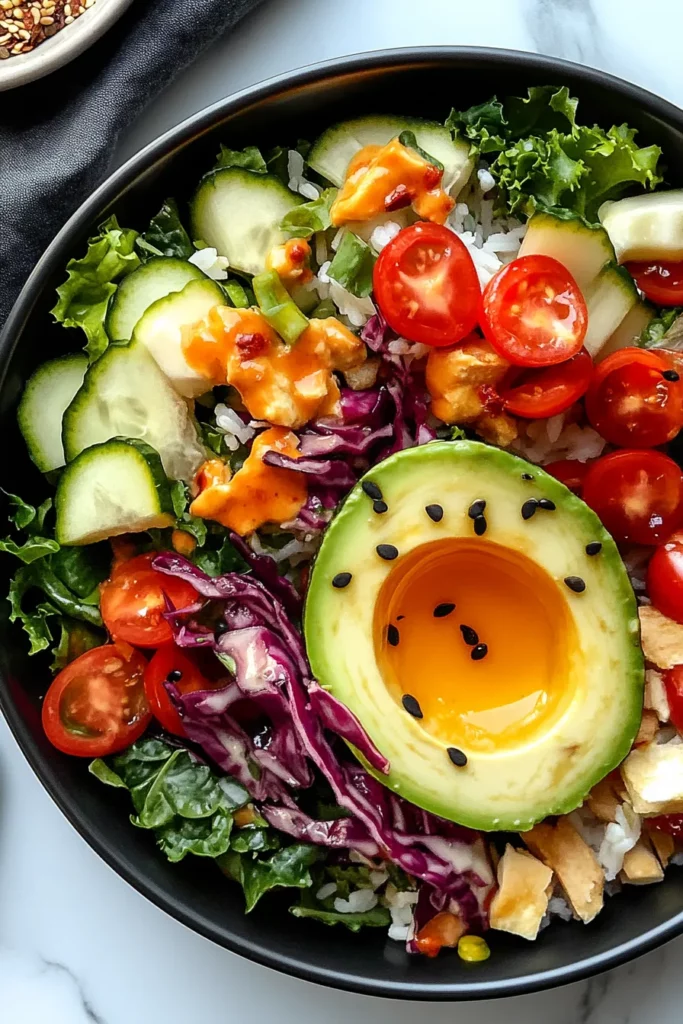 For a refreshing twist, chill small serving bowls in the fridge before plating. Scoop the salad into each bowl just before serving—this keeps the greens crisp and offers a cooling contrast to warmer dishes.