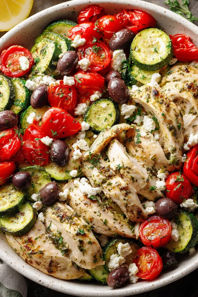 What makes this bake truly shine is its balance of flavors and textures. The zucchini soaks up all those aromatic Mediterranean seasonings—oregano, basil, garlic, and onion powder—while the chicken remains succulent beneath a blanket of melting cheese. Each bite offers a gentle tang from feta, a pop of sweetness from tomatoes, and that signature Mediterranean twist from olives and lemon. As it emerges from the oven bubbling and golden, the entire kitchen feels like a tiny trattoria. Whether you’re new to Mediterranean cooking or simply seeking a delicious one-pan meal, this healthy dinner promises comfort and excitement all at once.