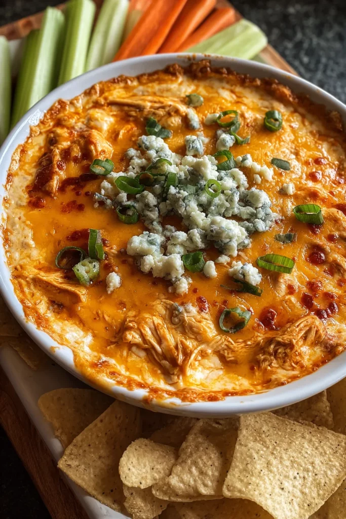 Rich and creamy with a spicy kick, this Oven Buffalo Chicken Dip combines tender chicken, creamy cheeses, and zesty buffalo sauce, making it a favorite for game days or cozy nights in!