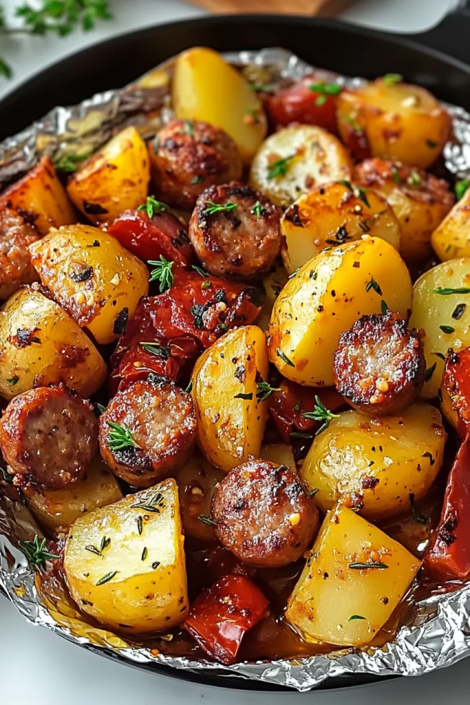 Smoky sausage mingles with tender potatoes, peppers, and onions, all wrapped in foil and grilled to perfection. Perfect for campouts or quick weeknight dinners, this packet meal packs big flavor with minimal fuss.