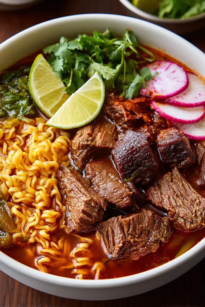 Grated ginger delivers a bright, zesty heat that cuts through the richness and adds a refreshing kick.