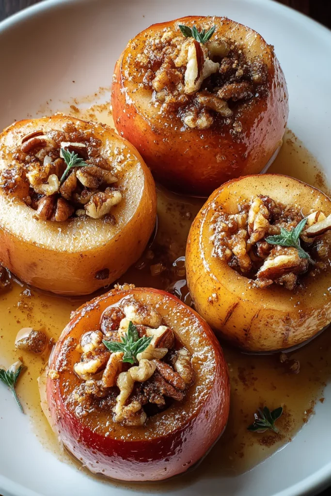 Sink your teeth into these soft, spiced apples, bursting with flavor from sweet brown sugar, crunchy nuts, and aromatic spices. They're perfect for chilly evenings!